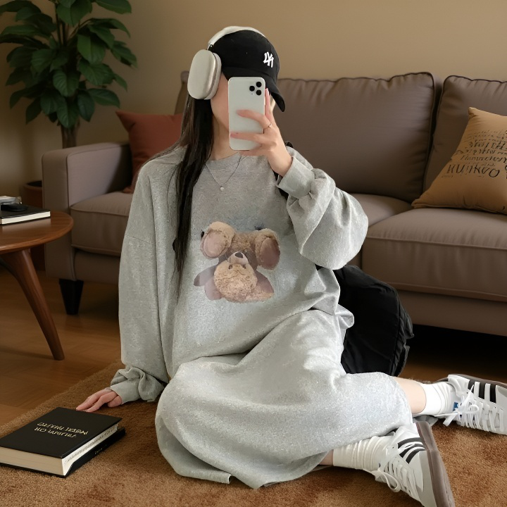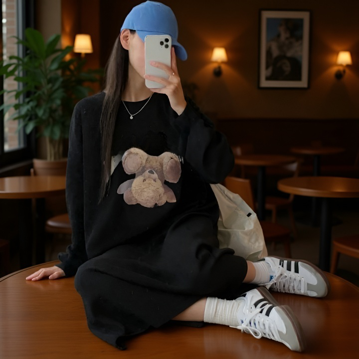 여성 긴팔 원피스 원피스 하프 기장 널찍하다 여유가 있다 느슨하다 묵히다 휴한하다 박형